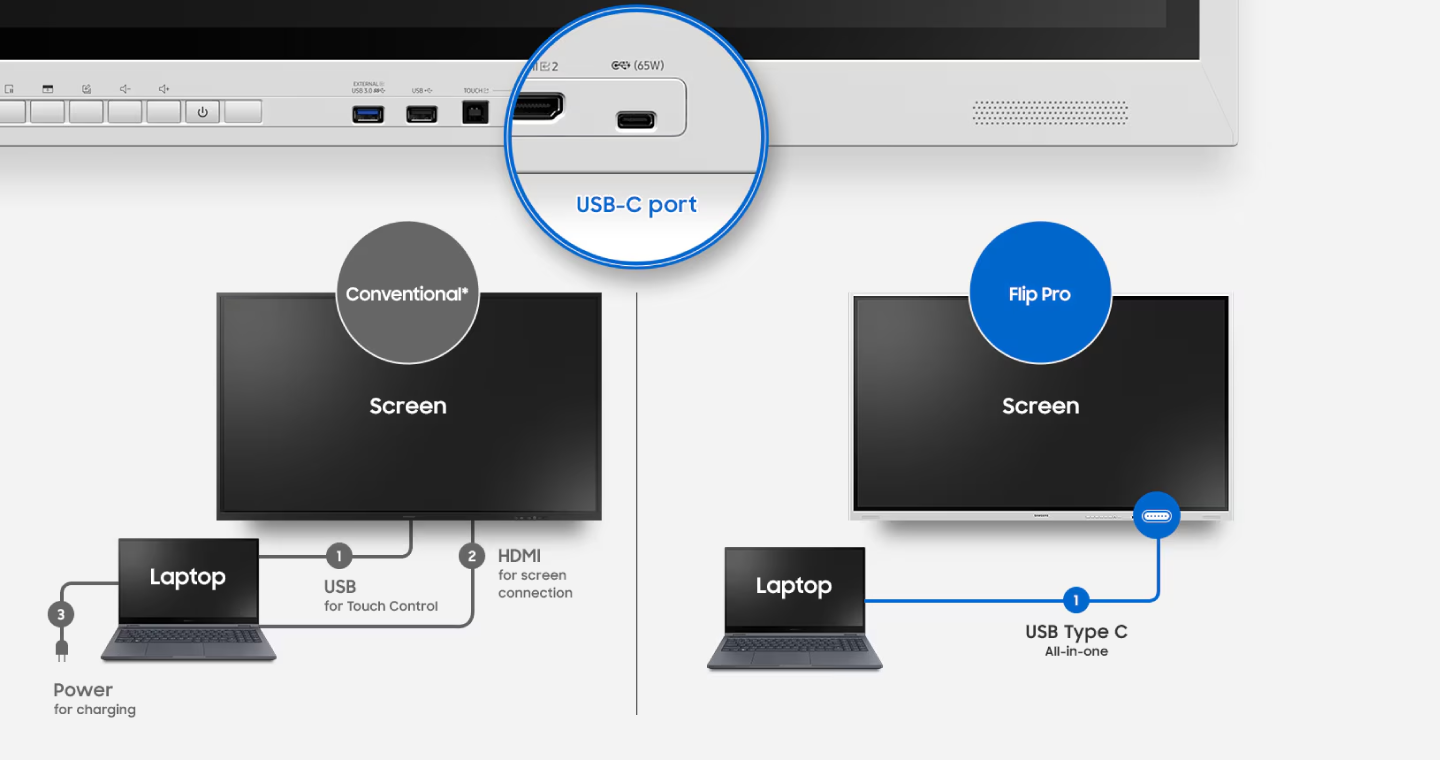 Educators can simply connect to the USB Type-C port, allowing them to deliver interactive and engaging lessons without any hassle.