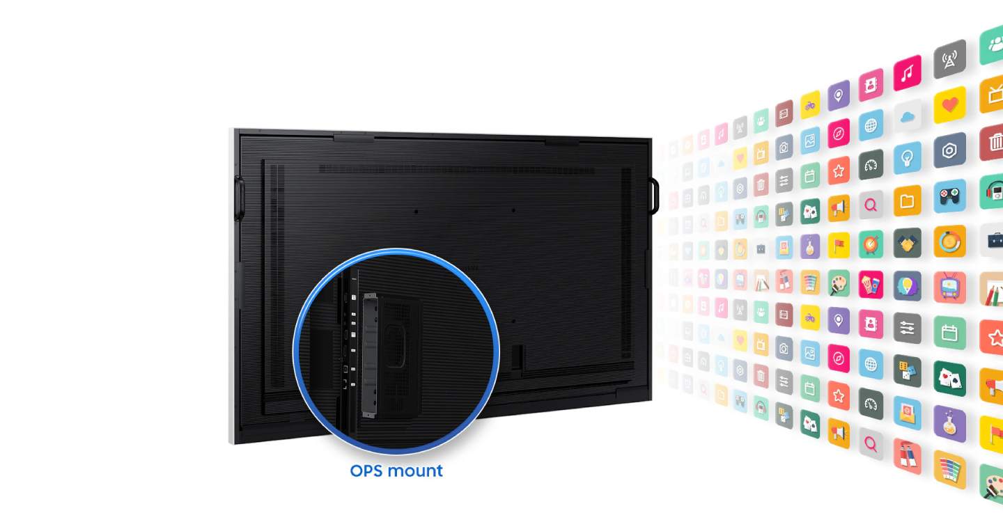 With OPS(Open Pluggable Specification) mount*, Flip Pro enables educators to use their third-party education solutions, allowing them to deploy school information systems(SIS), learning apps and tools.