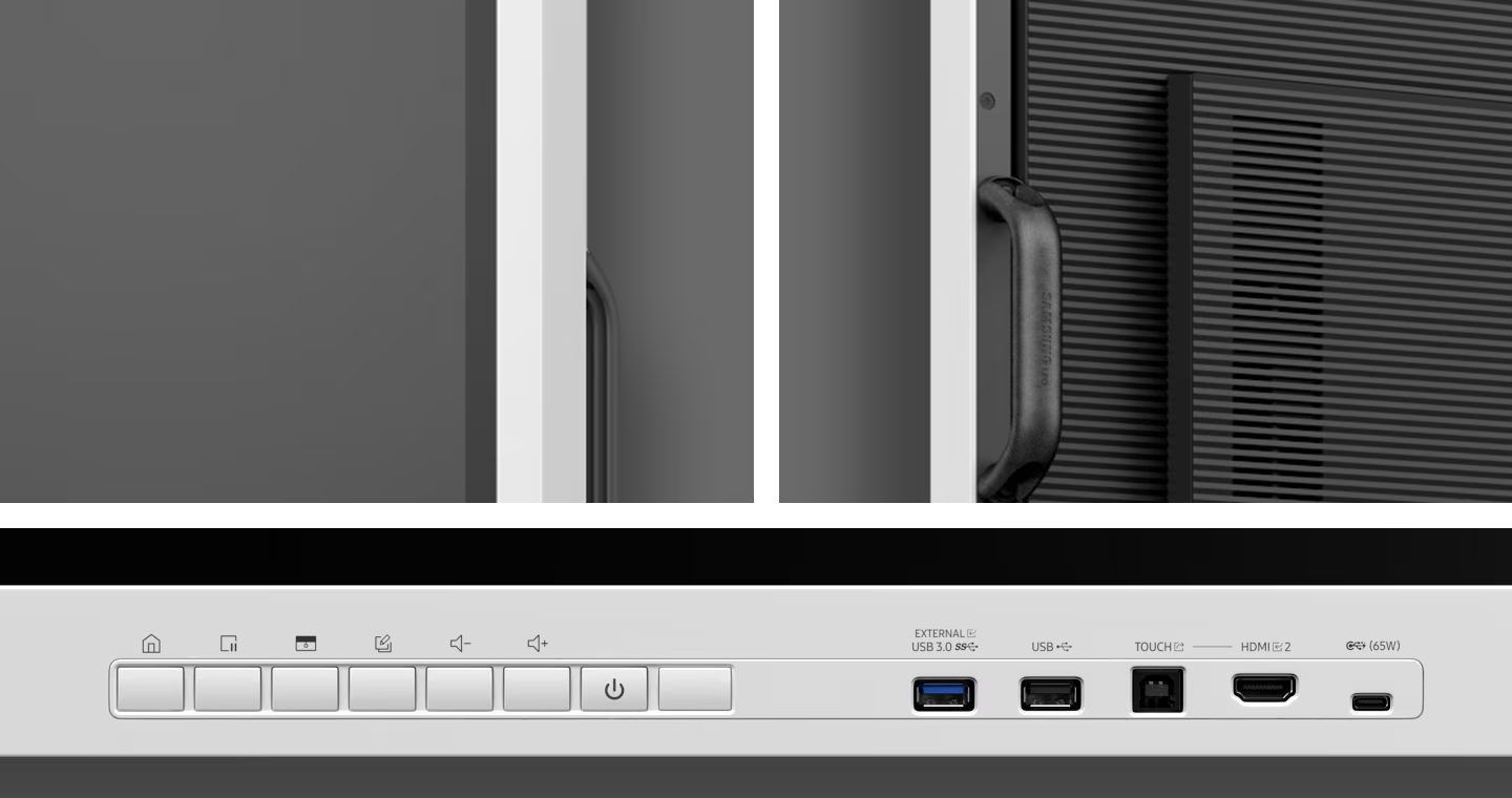 Flip Pro is designed specifically for education with a rear handle for easy moving*, as well as a front control panel for quick access. In addition, the elegant, light gray color ensures the Flip blends in seamlessly with its surroundings.